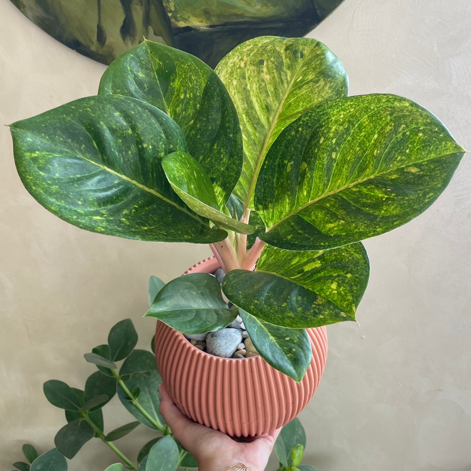 Thriving in bright, indirect light but also tolerant of low-light conditions, the Pink Aglaonema is easy to care for and forgiving. Water when the top inch of soil feels dry—typically every 1–2 weeks—and ensure good drainage to prevent overwatering.